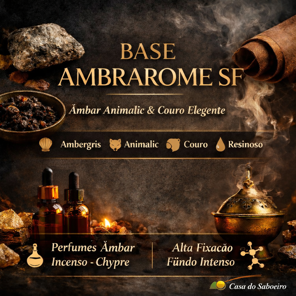 A Base Ambrarome Style é um acorde âmbar de alta performance, desenvolvido para reproduzir com máxima fidelidade o perfil olfativo clássico do Ambrarome original. Trata-se de uma base quente, profunda e intensamente envolvente, com forte caráter animalic-ambergris, sustentado por notas resinosas, couro elegante e uma doçura âmbar sutil e sofisticada.