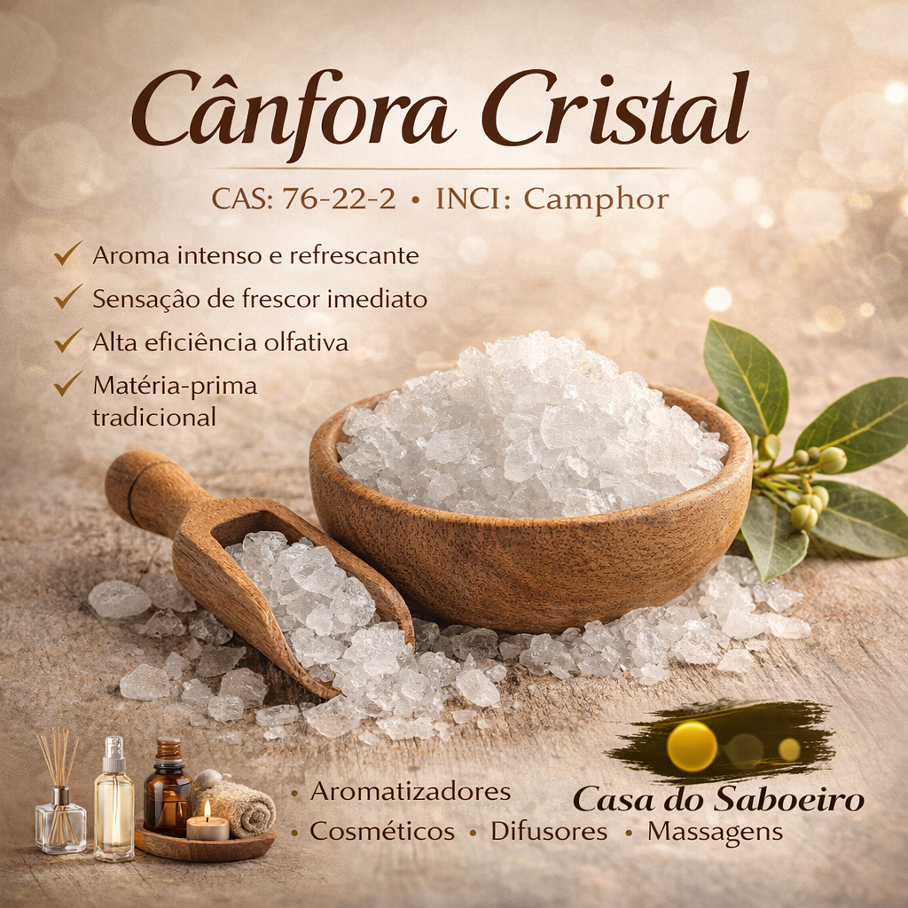 A Cânfora Cristal é uma matéria-prima clássica e amplamente utilizada nas indústrias cosmética, farmacêutica, aromática e de higiene. Reconhecida por seu aroma intenso e refrescante, proporciona sensação imediata de frescor, limpeza e abertura respiratória.